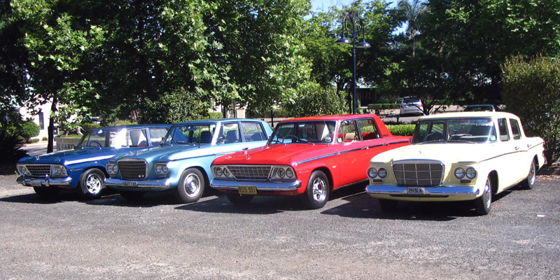 Tim's 64 Cruiser, Steve's 63 Lark Cruiser, Graham's 64 Cruiser, and Gary's 62 Lark.