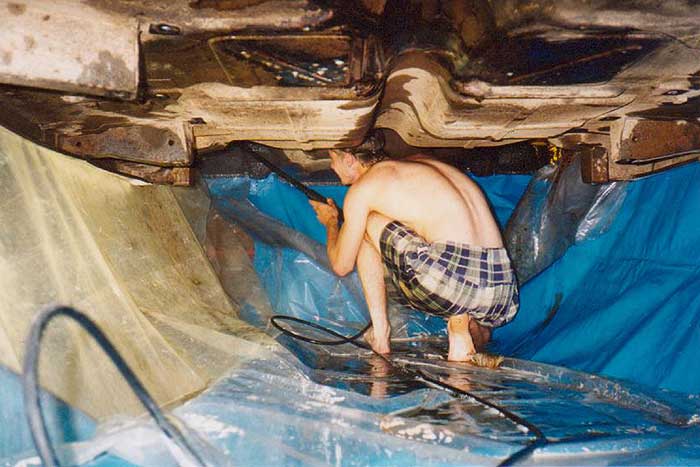 As they commenced restoration, they realised it was going to be a massive job, the suspension, brake rubbers, the seals in the engine, gearbox and differential had completely deteriorated with the non use of the vehicle. After much deliberation, they decided to completely rebuild the vehicle, removing the engine and body from the chassis, as it would be easier to repair the mechanics of the vehicle along the chassis line with no body on the chassis, also stripping the body paint back to bare metal as they found the paintwork had crazed in various places.