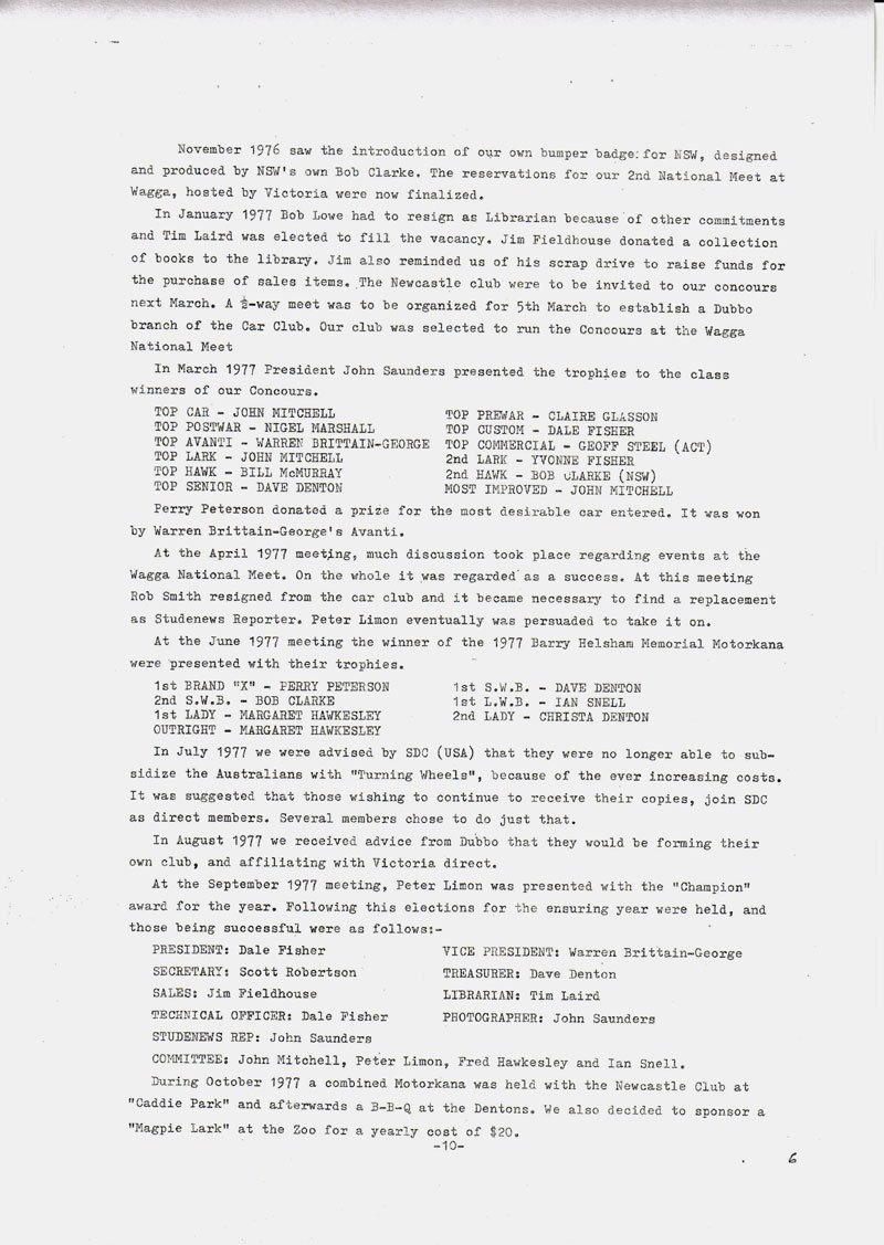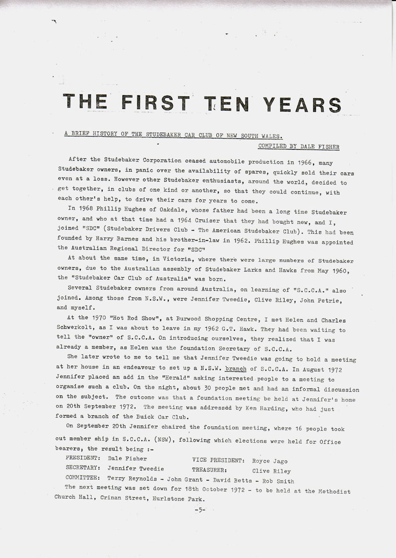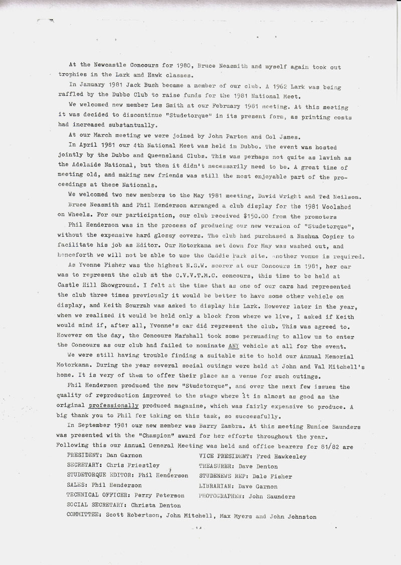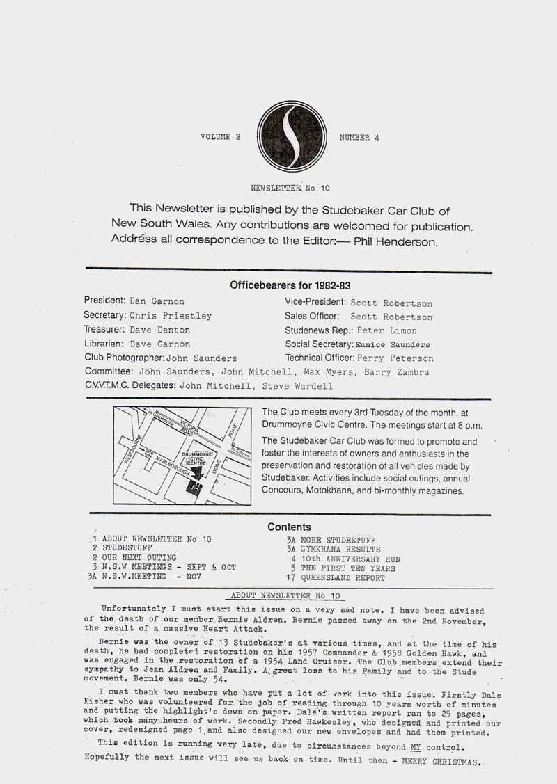 SCCNSW beginnings - Studetorque Newsletter November 1982. |